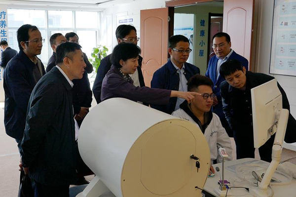 2018年04月09日上午,國家中醫藥管理局醫政司司長蔣健、國家中醫藥管理局醫政司副司長趙文華、國家中醫藥管理局醫政司基層處副處長程強、省衛生計生委副主任、省中醫藥管理局副局長董明培、省衛生計生委中醫藥服務管理處處長肖鋒、省衛生計生委中醫藥發展處主任科員吳化成在蕪湖市衛生計生委主任秦正華、蕪湖市醫院管理局副局長柯先明等領導陪同下,來到蕪湖圣美孚科技有限公司,考察調研我公司中醫大數據中心、云平臺建設、新產品研發等相關工作。